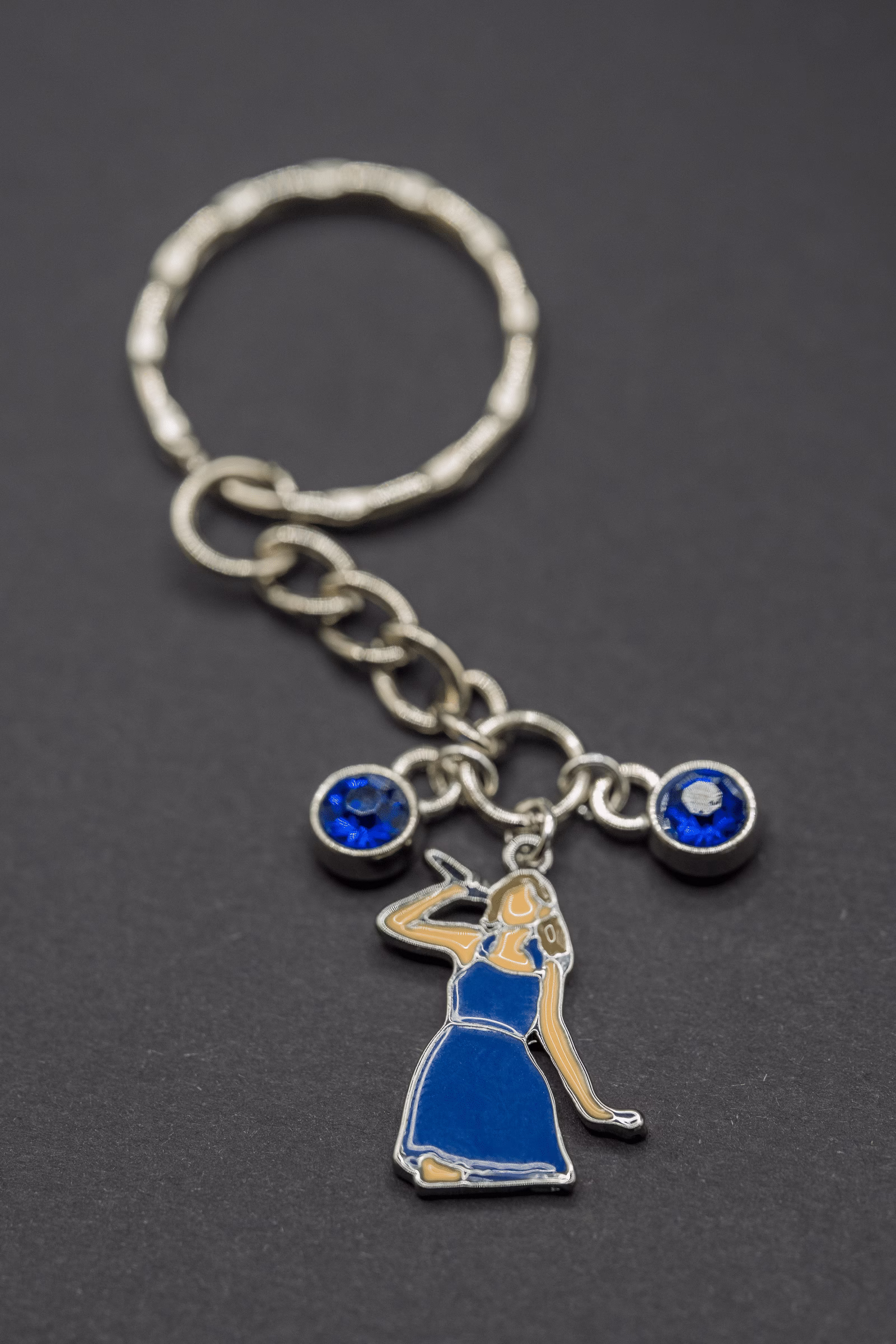 Key Ring: Durable keychain with matching zinc alloy charm and red crystal accents
